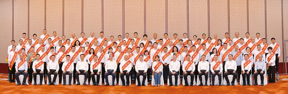 8月25日,第一届“山西慈善奖”表彰大会召开之际,省委书记蓝佛安,省委副书记、省长金湘军等省领导在太原会见了获奖代表,并合影留念。(记者史晓波摄)