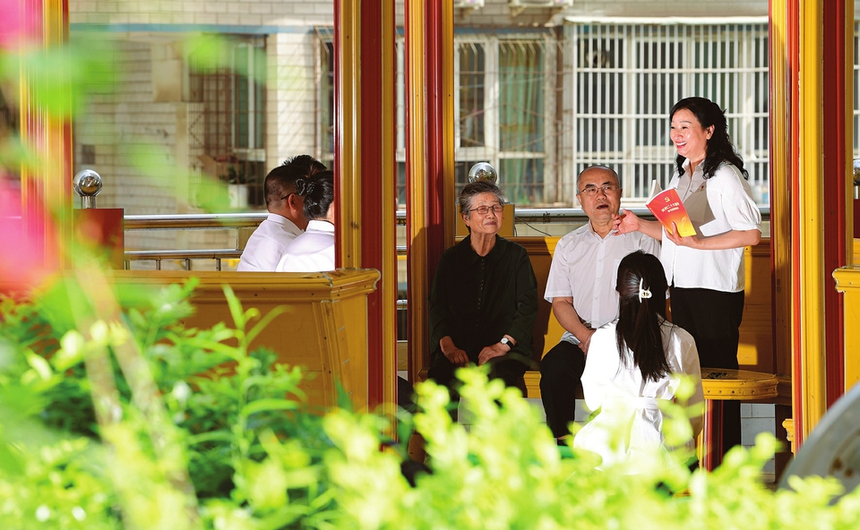 刘卫星给社区居民宣讲党的二十大精神。李虎威摄