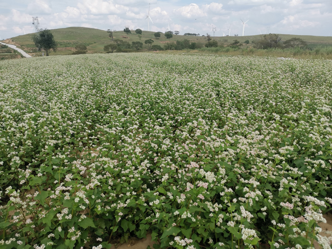 山西省朔州市平鲁区阻虎乡大干沟村的红山荞麦近日迎来盛花期。(池茂花 摄)
