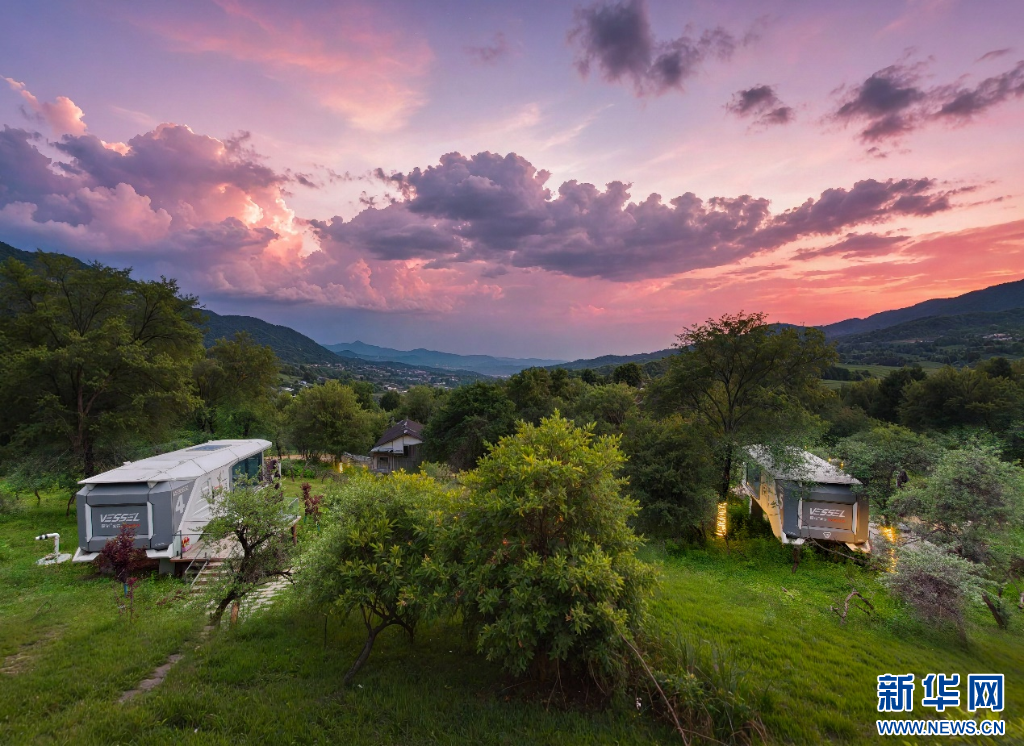 大东沟的暮色,如同打翻的颜料盘倾洒山间。新华网 发