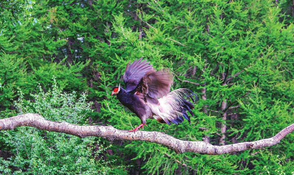 9月7日,一群褐马鸡在沁源县灵空山自然保护区内栖息、觅食。近年来,随着沁源县的生态环境不断优化,被誉为“东方宝石”的褐马鸡种群数量明显增加,呈现出活动区域面积不断扩大的趋势。(郭世虎摄)