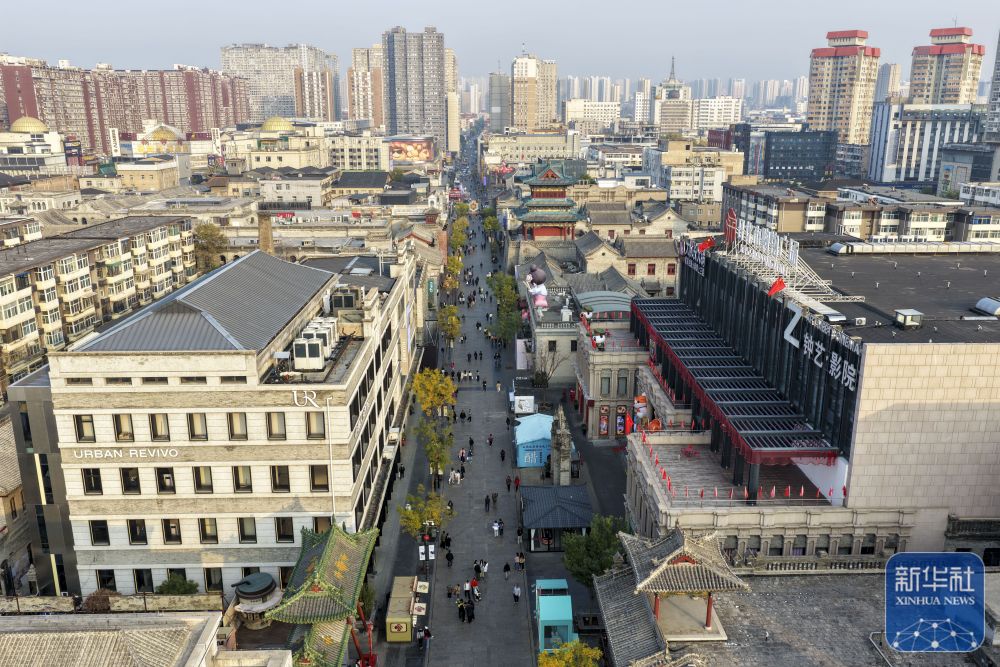 ↑ 钟楼街一景(无人机照片,10月29日摄)。