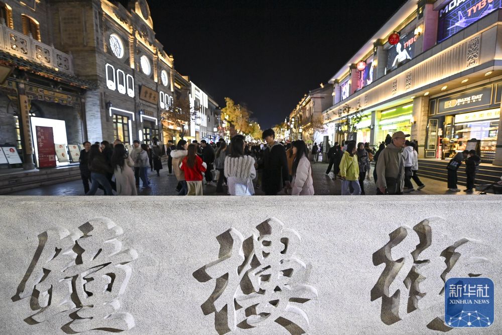 ↑ 夜色下的钟楼街一景(11月1日摄)。