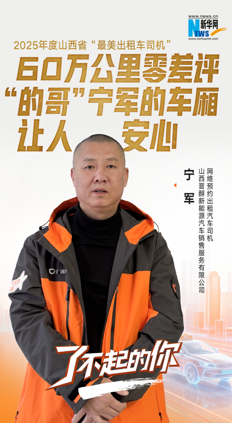 安全行驶超60万公里,完成订单近5万单,保持着零事故、零投诉、零差评的运营纪录……从业8年来,山西晋醇新能源汽车销售服务有限公司网络预约出租汽车司机宁军用专业与坚守,获评2025年山西省“最美出租汽车司机”称号。