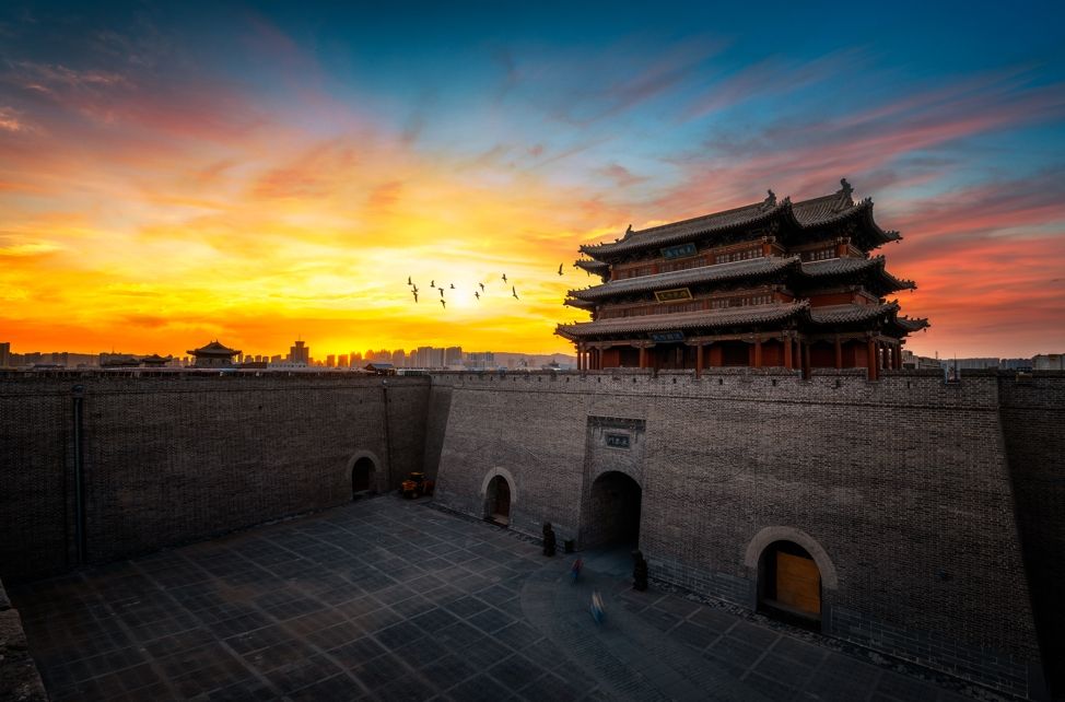 山西省大同市古城墙夕阳