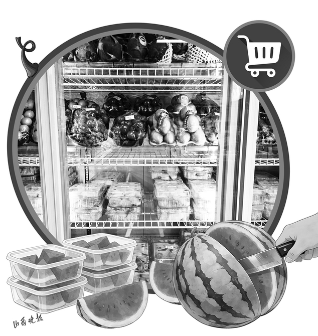 在太原长治路一家连锁水果店的操作间里,戴着口罩和手套的店员正快速地将哈密瓜去皮、切块、装盒。店员说:“我们用的都是A级果,切好后会在盒子上贴标签,标注切配时间,建议两小时内食用。”这种透明化的操作,赢得了很多人的信赖,也是他们愿意为之付费的核心所在。