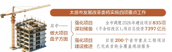 做大项目盘子,以有效投资积蓄发展后劲。强化项目谋划储备,全市调度2026年建设项目835项(不含综改区),项目总投资7397亿元,年度计划投资1063亿元。强化项目建设推进,以“重大项目建设年”行动为牵引,深化项目全生命周期管理,建立市领导、部门、县区主要负责人全覆盖包联机制,推动服务、监督机制提前介入项目流程。目前200个省市重点工程项目已完成首轮全覆盖现场服务。