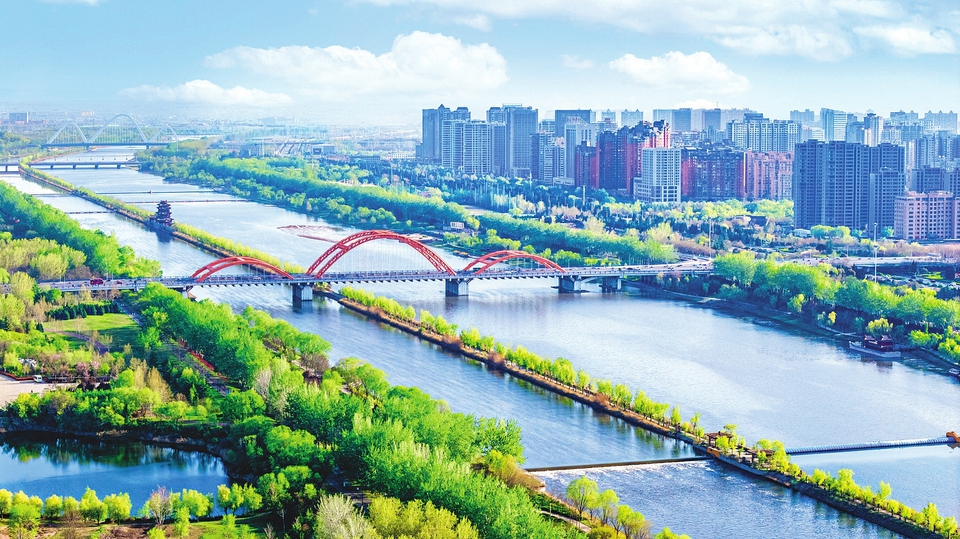 4月7日,临汾市汾河文化生态景区春意盎然、风光旖旎。近年来,该市大力推进城市增绿提质与空间优化,打造“开门见绿、推窗见景”的宜居家园,让生态红利惠及广大群众。(田红萍摄)