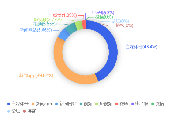 截至目前,该文章在互联网上传播总量共53篇。各信源的信息发布情况中,自媒体号占比最大,其次是新闻APP。(数据来源:新华睿思·数媒智慧分析平台)