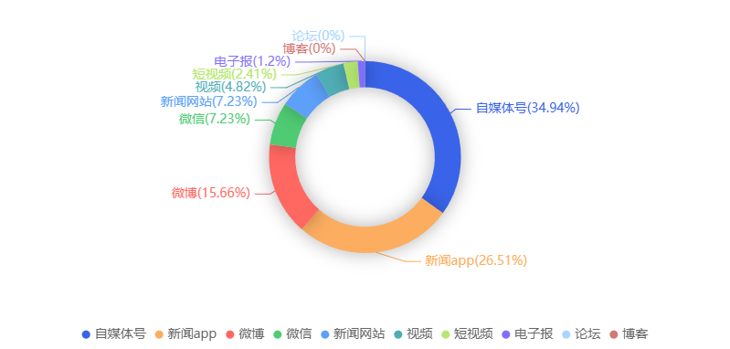 截至目前,该文章在互联网上传播总量共238篇。各信源的信息发布情况中,微博占比最大,其次是自媒体号。(数据来源:新华睿思·数媒智慧分析平台)