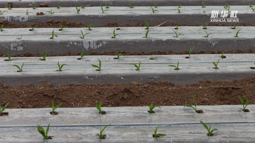 采用集施肥、播种、覆膜等功能于一体的智能农机,高效播种,省时省力。地膜覆盖后仅两周左右就已陆续出苗,长势整齐旺盛,田间管护有序推进。(记者原勋)