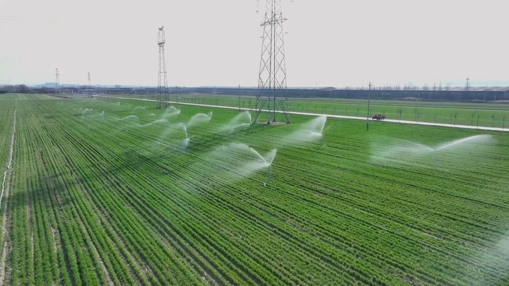 山西临汾300多万亩小麦也进入拔节期,田间水肥管理迎来关键时刻。在山西省临汾市尧都区贾得乡石村的农田里,旋转喷头不定时喷洒着水肥。国家电网山西电力(临汾)太行黎明共产党员服务队队员穿梭于机井房与配电设施之间,指导农户安全用电。