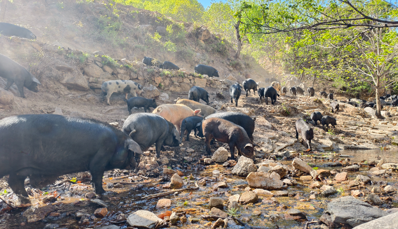 2021年,狼牙沟村村民李占峰抱着尝试的心态,开始散养黑猪。“最初只养了20多头,全程深山散养——不设限位栏、不圈养,不喂激素饲料、不催肥,定时补充玉米粒、麦麸等,严格按一年半的生态慢养周期出栏。”